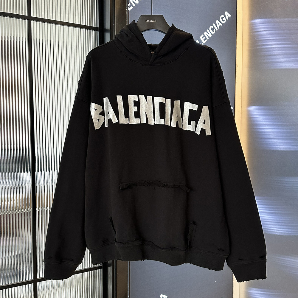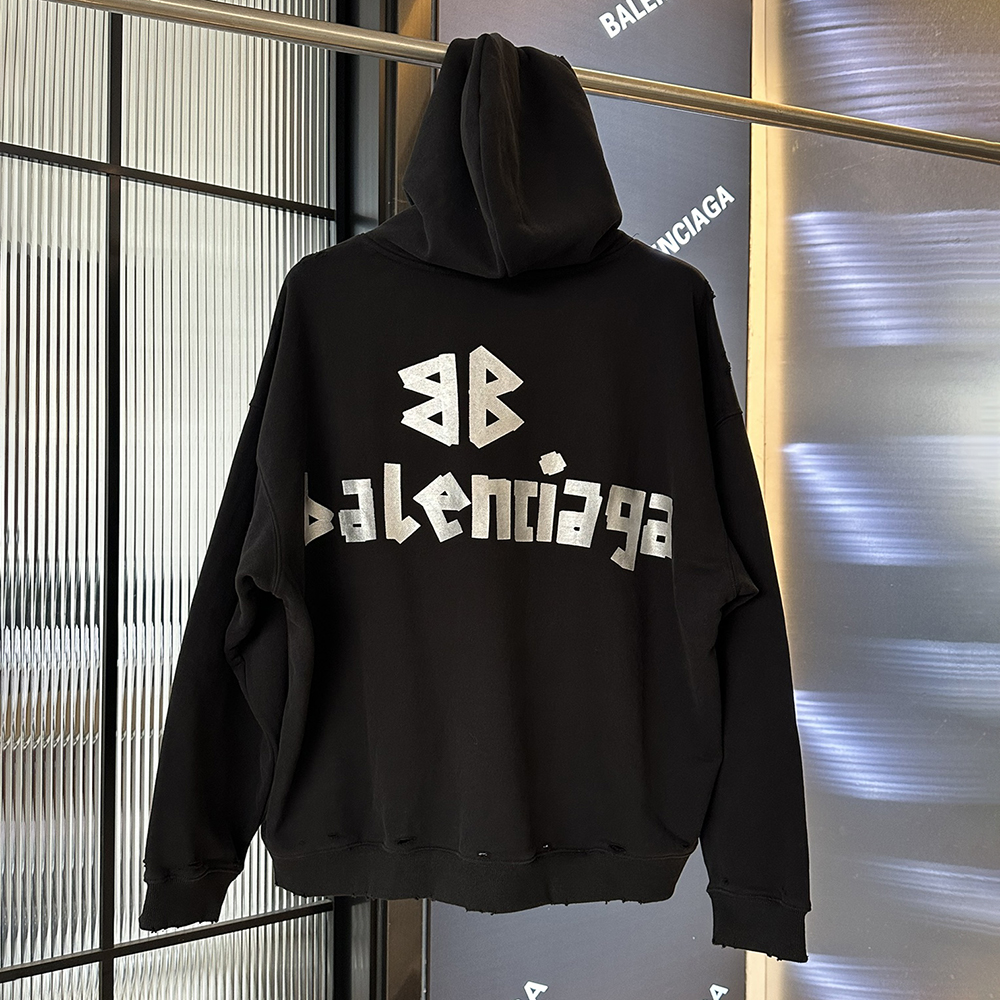 Logo Embroidery Print Washed Cut Long Sleeve Hoodies