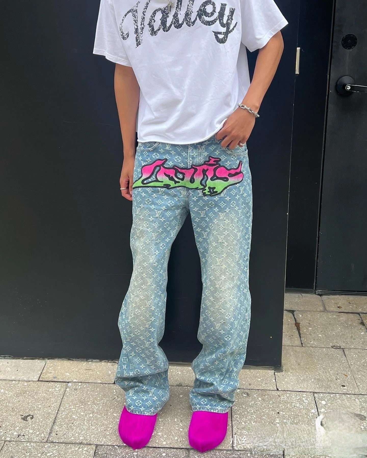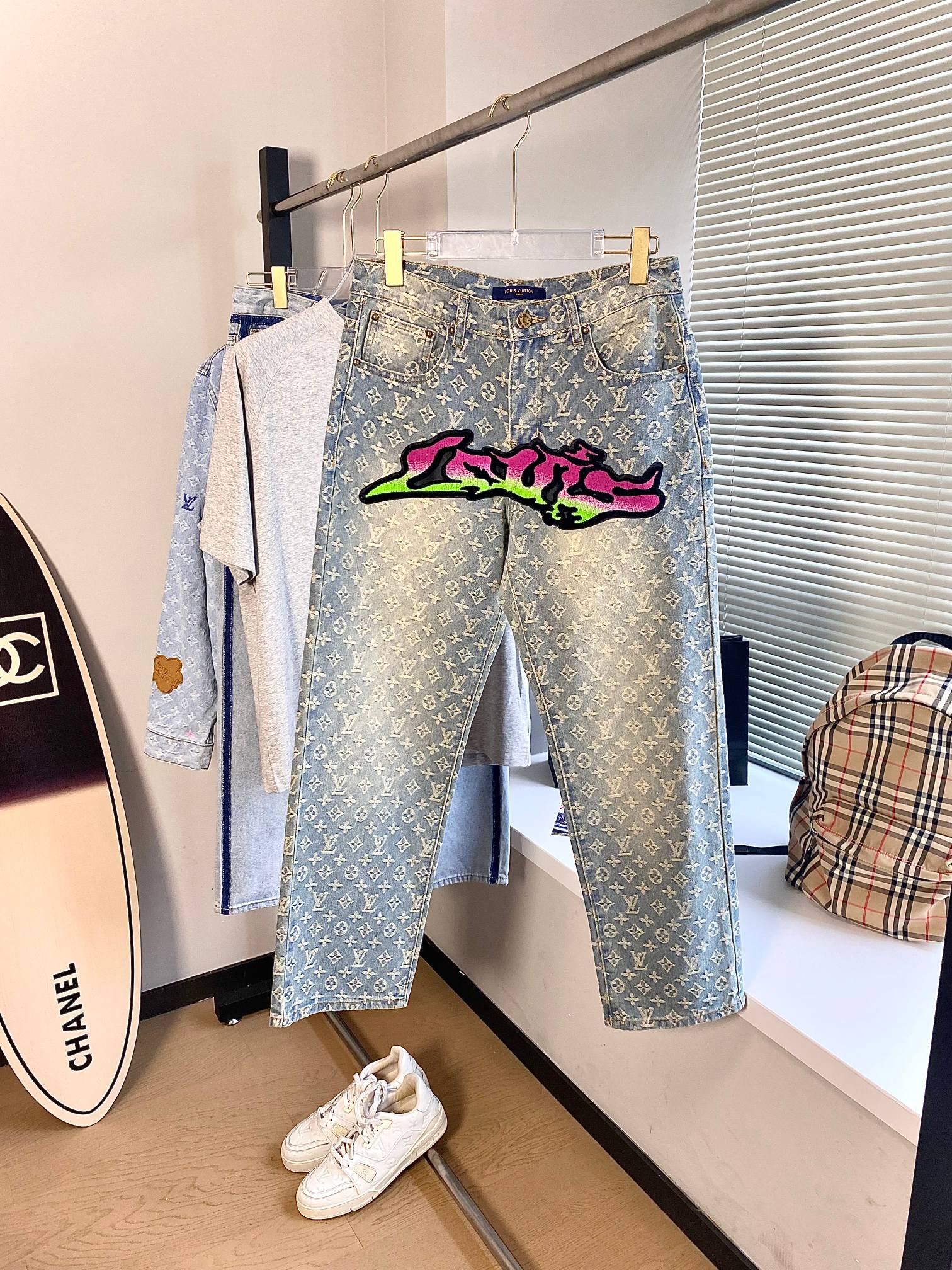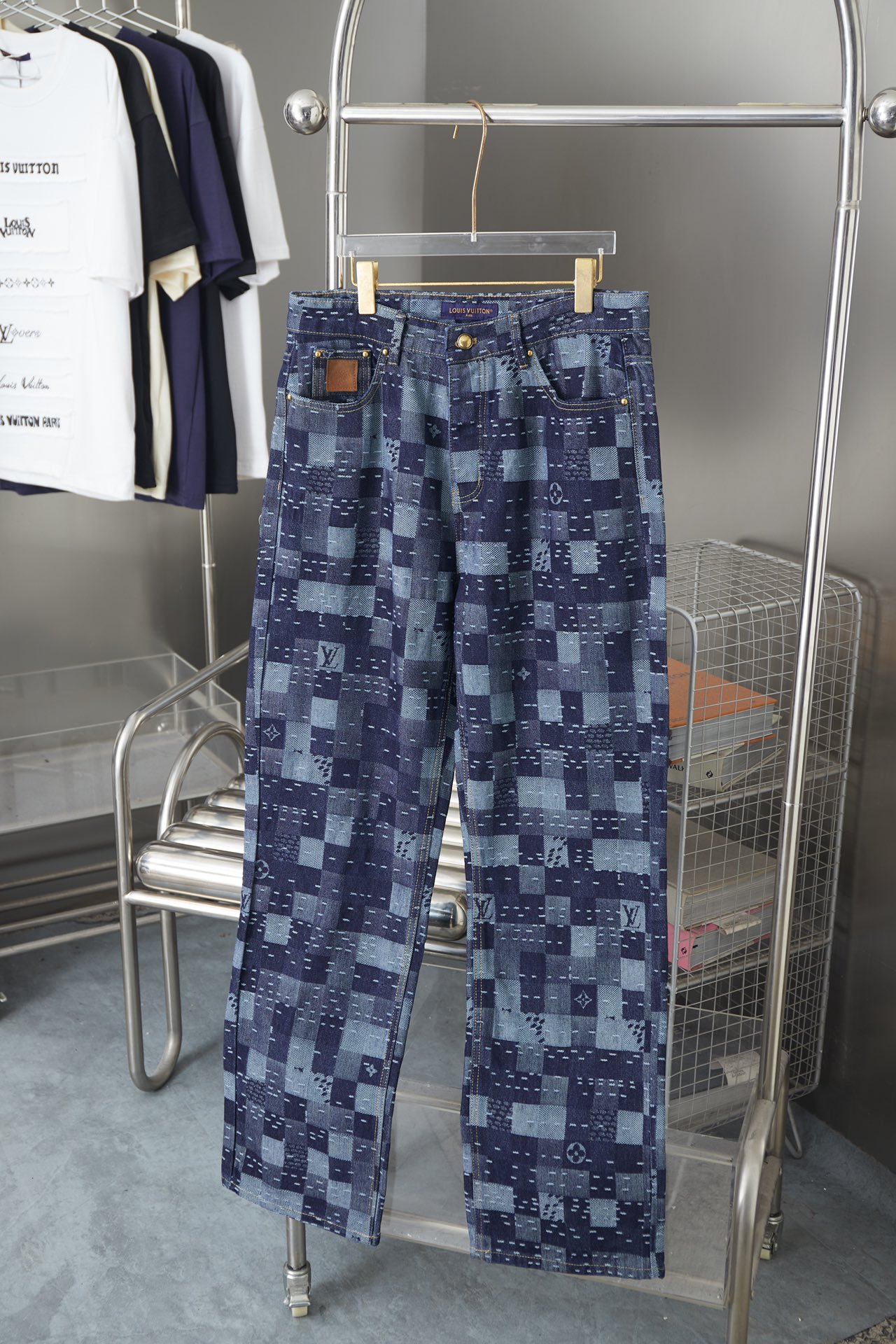 1105 New limited edition checkerboard patchwork washed blue denim jacket jeans set