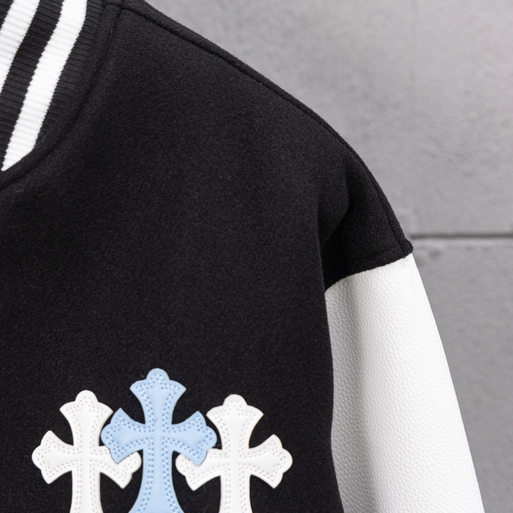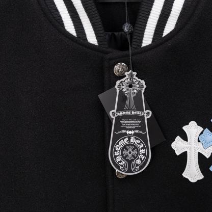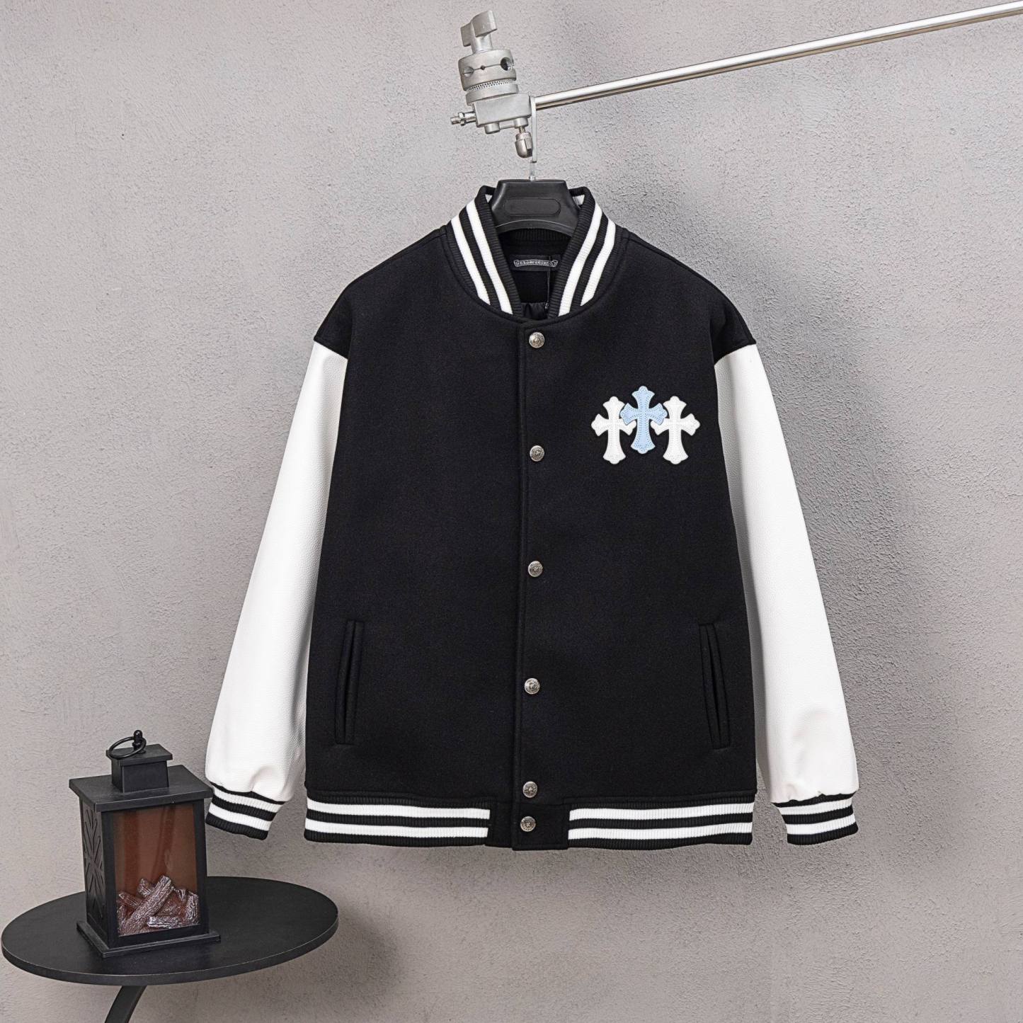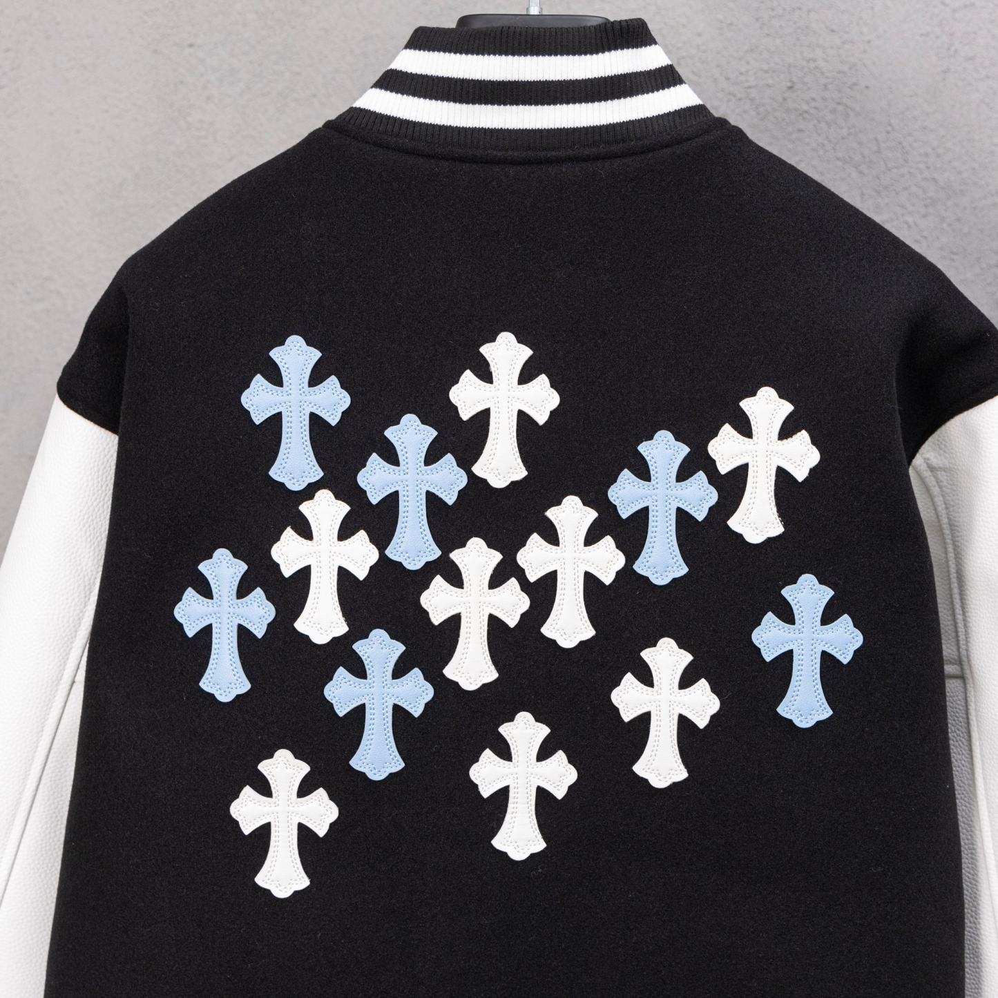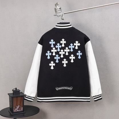 Cross Embroidered Long Sleeve Baseball Jacket